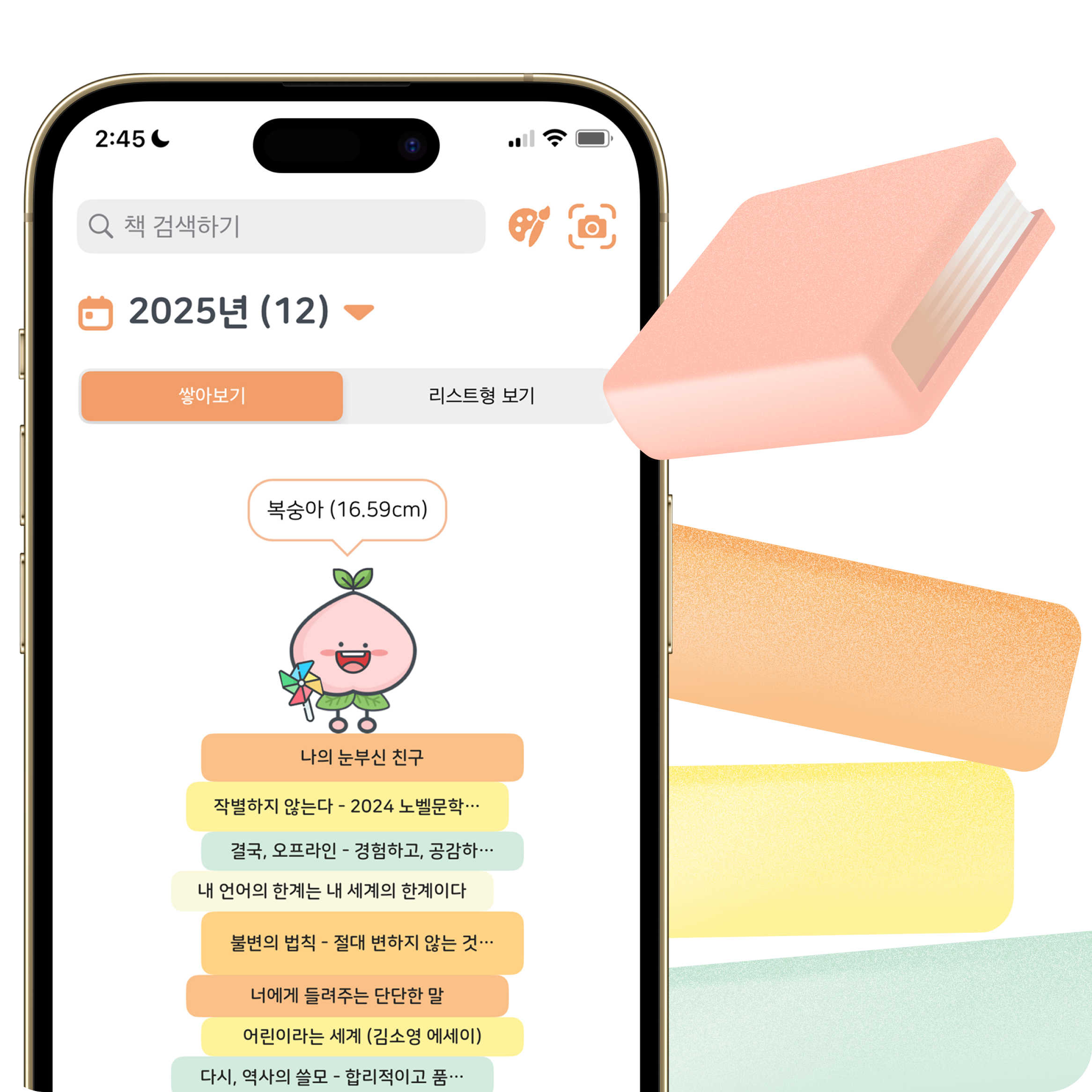 읽은 쪽수만큼의 높이로 책이 쌓여요.