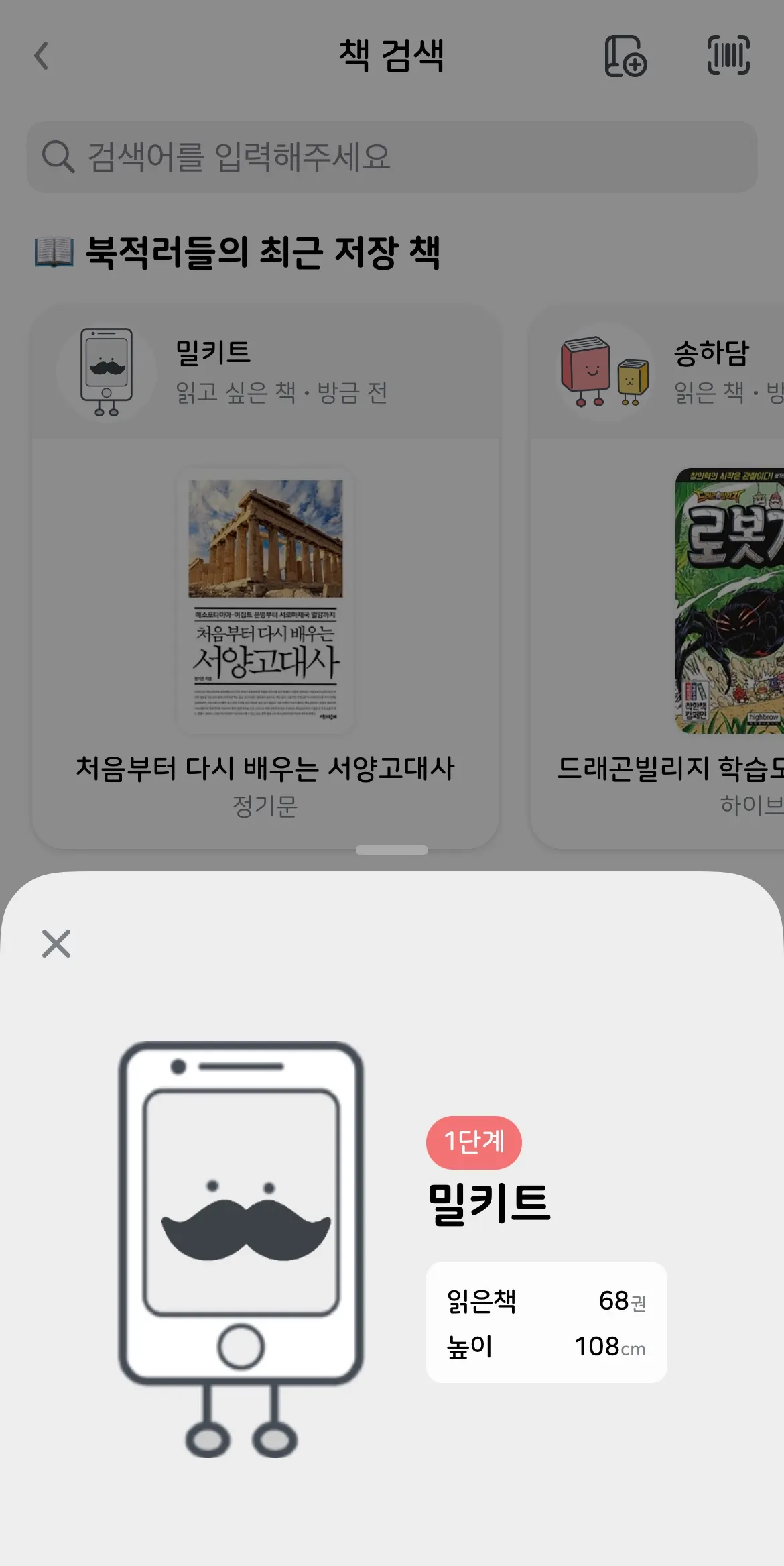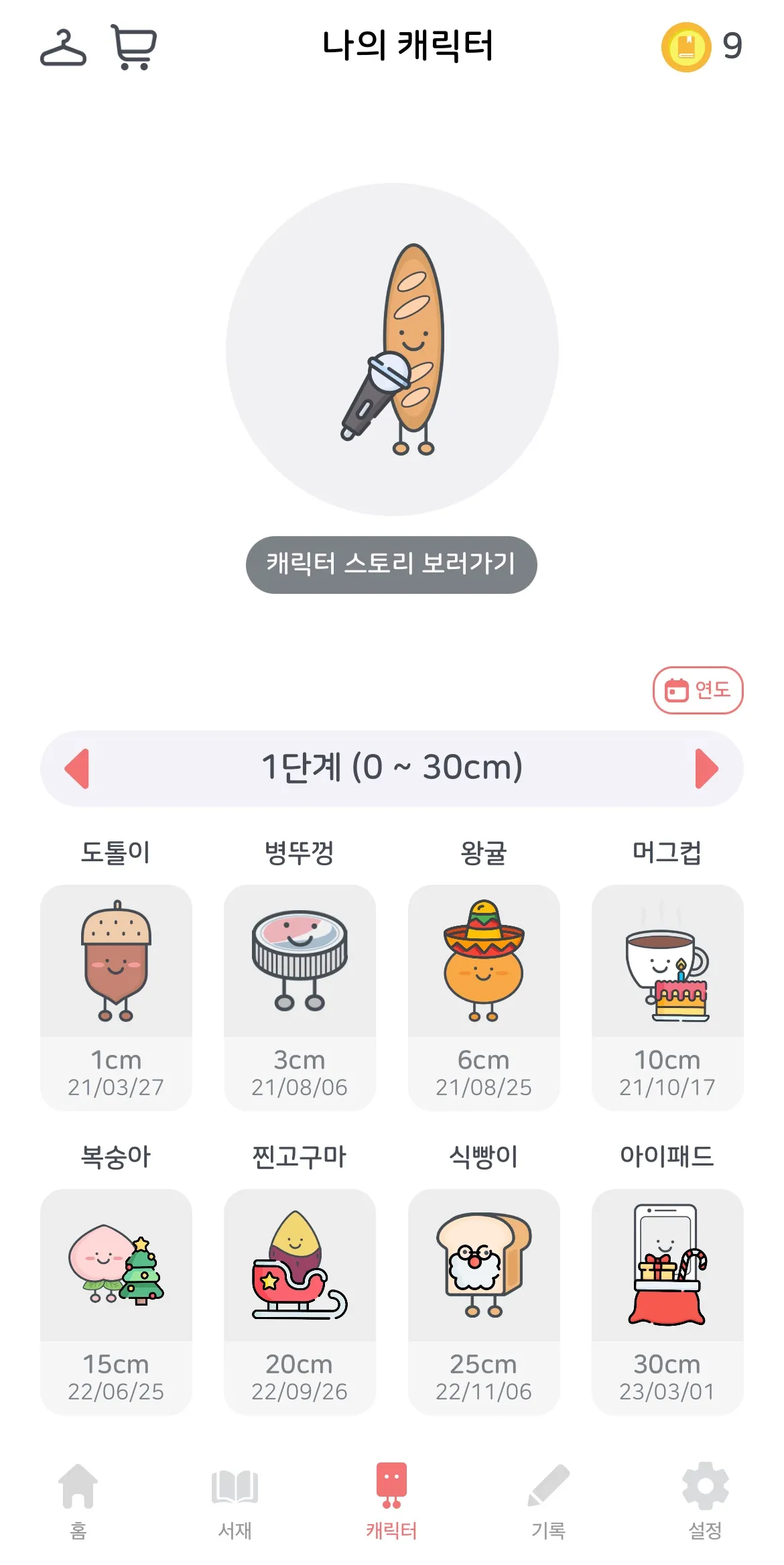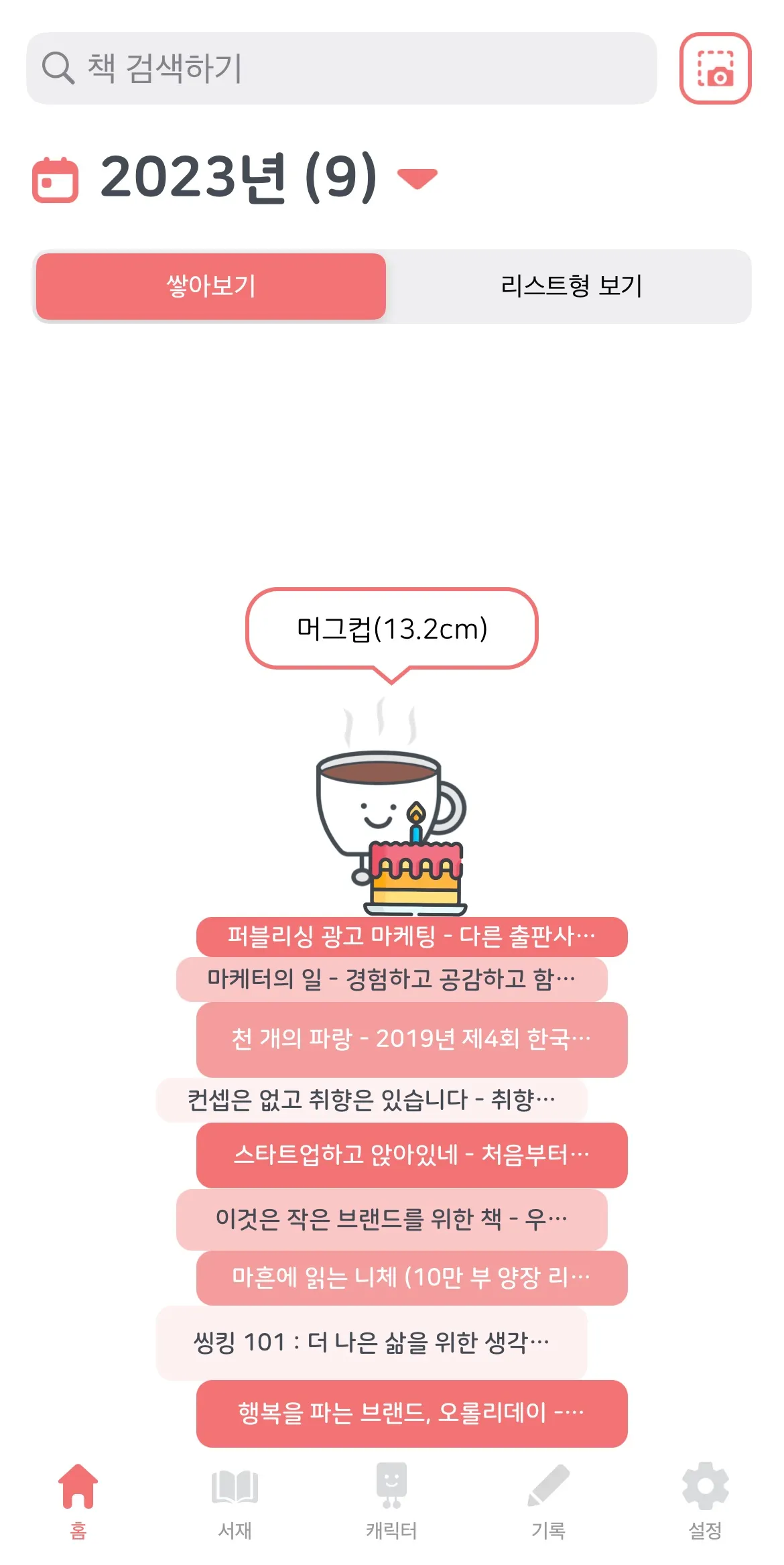책을 쌓을수록 오픈 되는 캐릭터들을 꾸밀 수 있는 기능이에요.