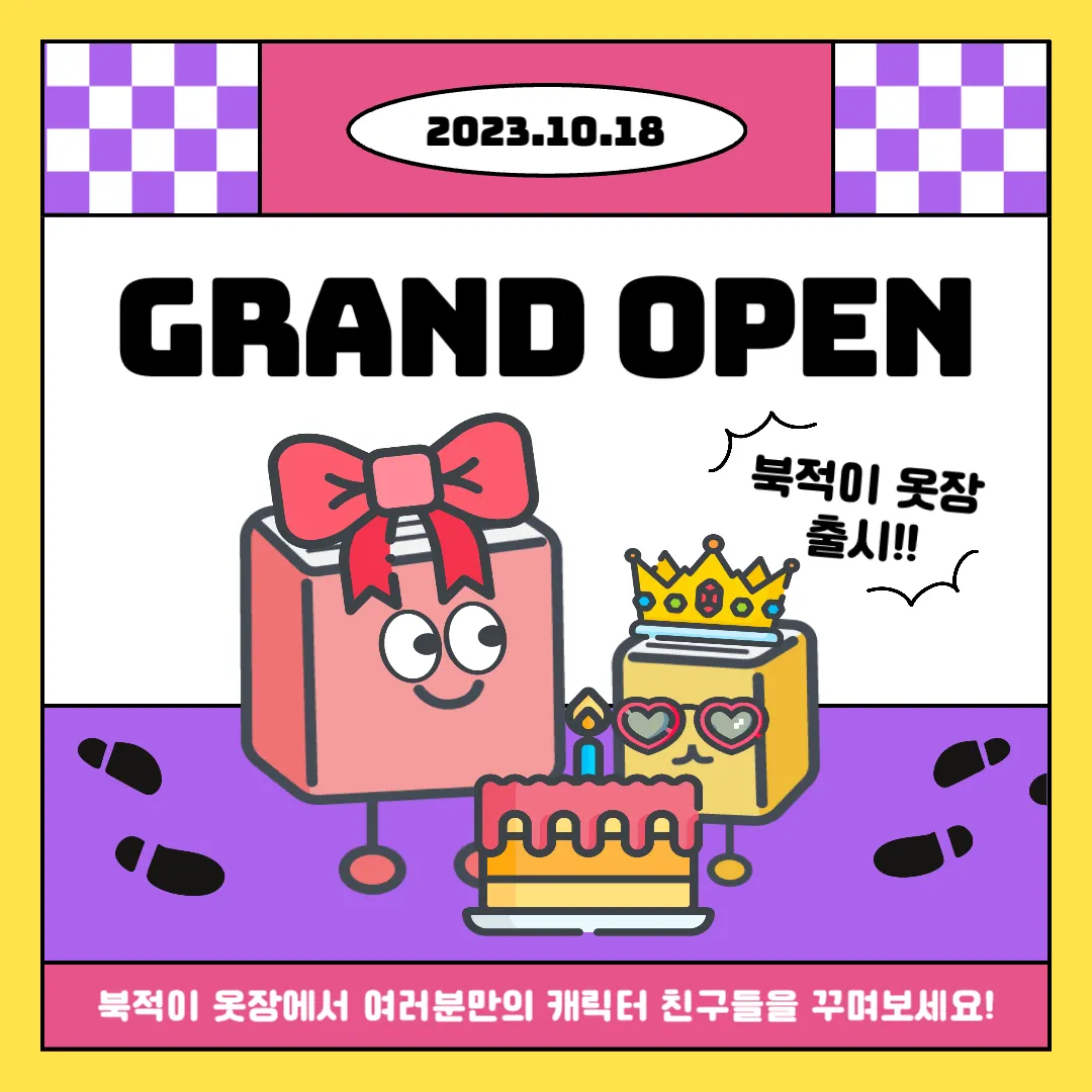 이제 북적이에서 나만의 캐릭터 친구들을 꾸미고 공유해 보세요!