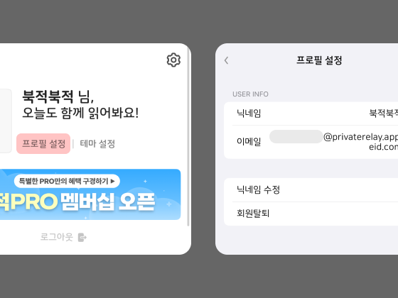 ( 이메일 정보는 북적북적 마이페이지 > 프로필 설정 메뉴를 클릭하면 확인할 수 있어요. )